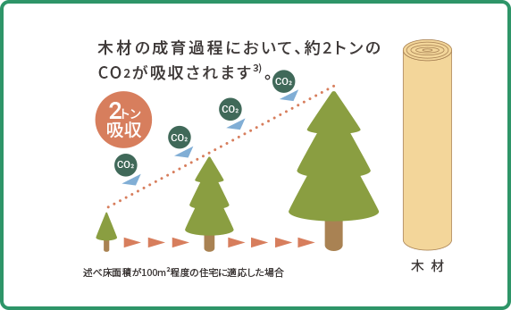 そして木材の成長過程において、1棟あたり約7トンのCO2を吸収します。