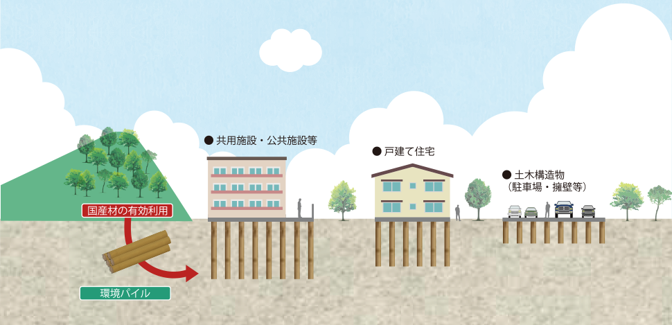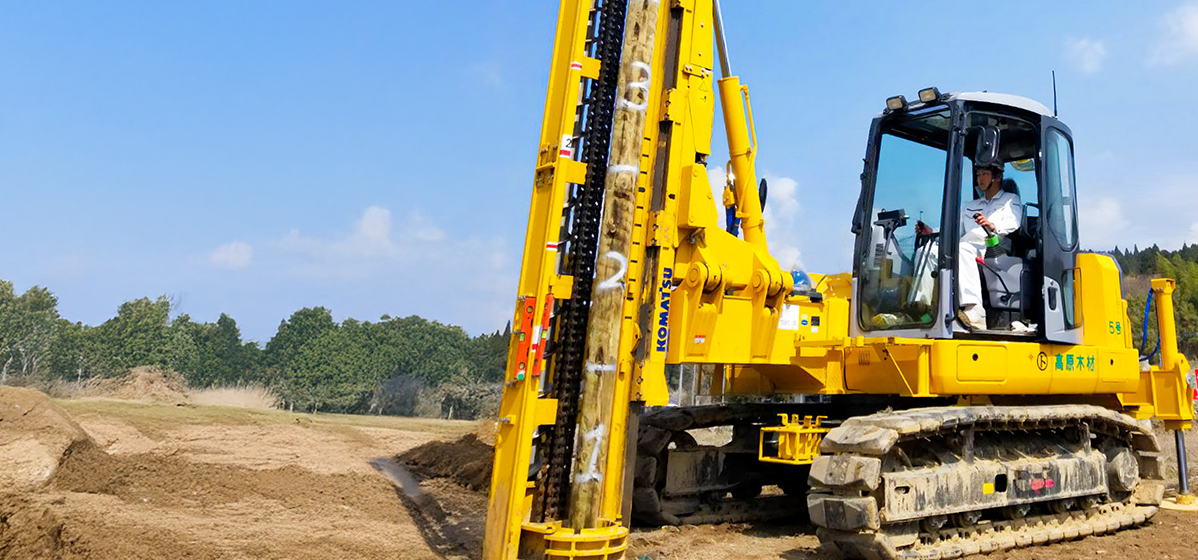 創業100年を超す、木材のプロが行う地盤補強工事、「環境パイル工法」を通して、弊社は安心と安全をお届けします。