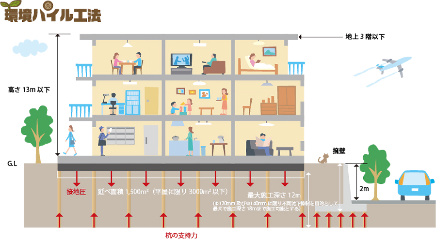SDGs・環境問題に貢献する、環境パイル(S)工法。