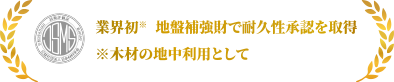 環境パイル工法はJAS製品またはAQ認証を取得をしている工場で加圧注入保存処理をした木材を使用する住宅地盤基礎補強の工法です。